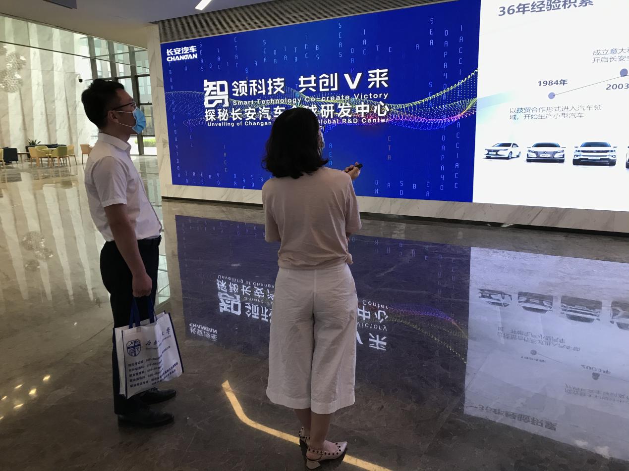 在公司的引导下,黄老师来到了位于重庆两江新区的长安汽车两江工厂,从2014年开始建造,在2017年正式投入生产。由焊接车间、冲压空间、涂装车间、总装车间等几部分组成。在总装车间解说人员的带领下,黄老师参观了总装车间,解说人员详细讲解了总装车间的生产流程、管理规范等方面,同时参观了位于长安全球研发中心的长安汽车展览厅,解说员对长安现行上市的汽车进行了介绍。